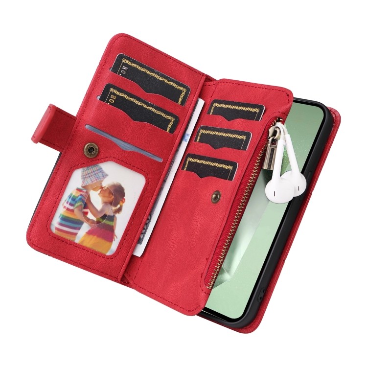 Чохол-книжка Dual-color 9 Card Slots Zipper Wallet Leather для Samsung Galaxy S24 FE 5G у червоному виконанні - це ідеальне поєднання функціональності та стилю. Виготовлений із високоякісної синтетичної шкіри, він забезпечує надійний захист вашого пристрою від подряпин та пошкоджень. Чохол оснащений дев'ятьма слотами для карт, що забезпечує ідеальну організацію ваших кредиток та візиток. Зручна блискавка гарантує безпеку ваших речей, а функція підставки дозволяє комфортно дивитися відео та проводити відеодзвінки. Цей чохол створений для тих, хто цінує стиль та практичність в одному аксесуарі.