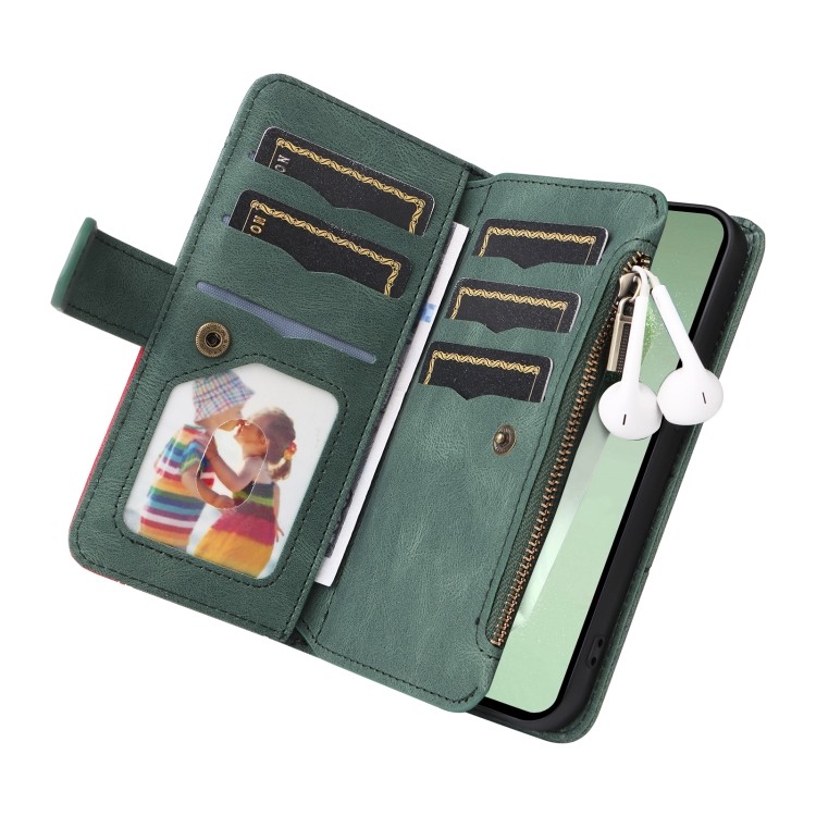 Опис Чохол-книжка Dual-color 9 Card Slots Zipper Wallet Leather для Samsung Galaxy S24 FE 5G - зелений
