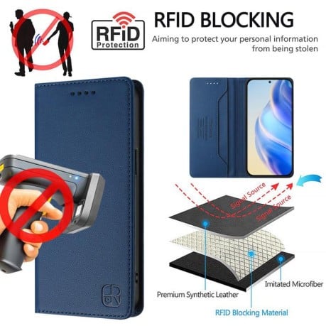 Модель Retro Skin Feel Business Magnetic для OnePlus Ace 5 Racing у благородному темно-синьому кольорі поєднує функції захисного аксесуара та компактного гаманця. Магнітна застібка з посиленою притягальністю надійно фіксує ствірку, виключаючи випадкове розкриття в сумці або кишені. Дворівнева конструкція включає зовнішню оболонку з преміальної синтетичної шкіри та внутрішній силіконовий бампер, що поглинає удари при падінні. RFID-блокування вбудована в структуру матеріалу — спеціальний екрануючий шар запобігає несанкціонованому зчитуванню даних банківських карт. Для активних користувачів передбачена підставка з трьома фіксованими кутами нахилу (40°, 45°, 80°), що забезпечує комфортний перегляд відео або участь у відеоконференціях.