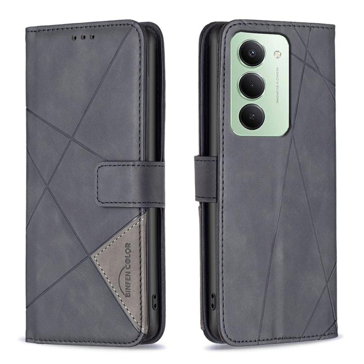 Чохол-книжка з фактурою Rhombus та магнітним хлястиком на Xiaomi Redmi Note 13 4G - чорний