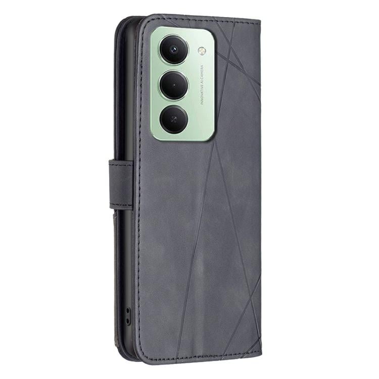Чохол-книжка з фактурою Rhombus та магнітним хлястиком на Xiaomi Redmi Note 14 4G - чорний