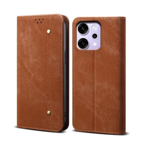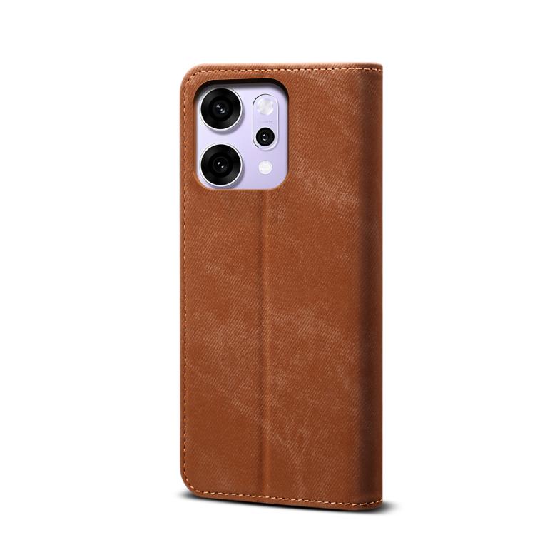 Чохол-книжка з джинсовою тканиною casual на OPPO Reno14 5G Global — коричневий