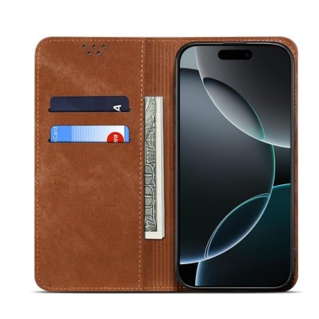 OPPO, Аксессуари для OPPO Reno серії, Чохли для Oppo Reno 14, Чохол-книжка з джинсовою тканиною casual на OPPO Reno14 5G Global — коричневий, Матеріал із синтетичної шкіри, Матеріал силіконові, Вид чохли книжки, Тип із підставкою, Тип із кишенею для карт, Колір коричневі Купуйте Чохол-книжка з джинсовою тканиною casual на OPPO Reno14 5G Global — коричневий в інтернет-магазині Chekhol ✔ЧЕСНА ціна ✔ШВИДКА доставка✈ до Києва, Одеси, Харкова та по всій Україні ☎ +380991171046