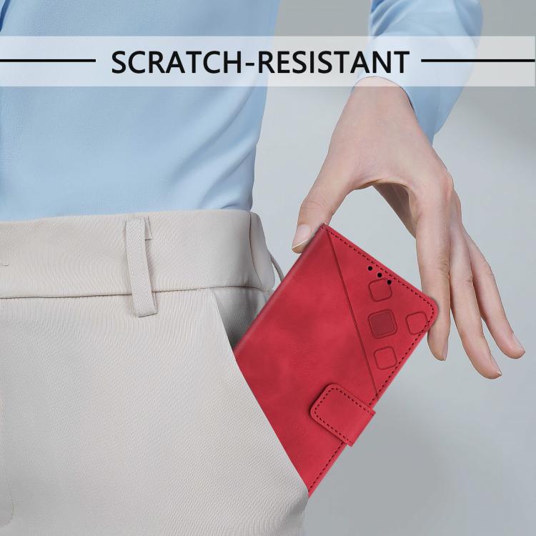 Елегантна книжка Skin-feel Embossed червоного кольору для Samsung Galaxy A07 4G з тисненим дизайном