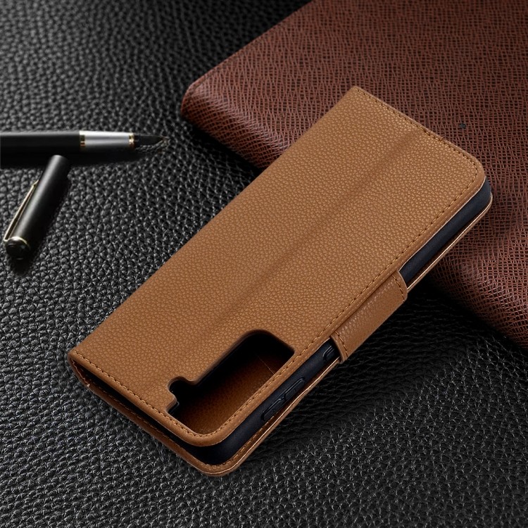 Чохол-книжка Litchi Texture Pure Color Samsung Galaxy S21 - коричневий