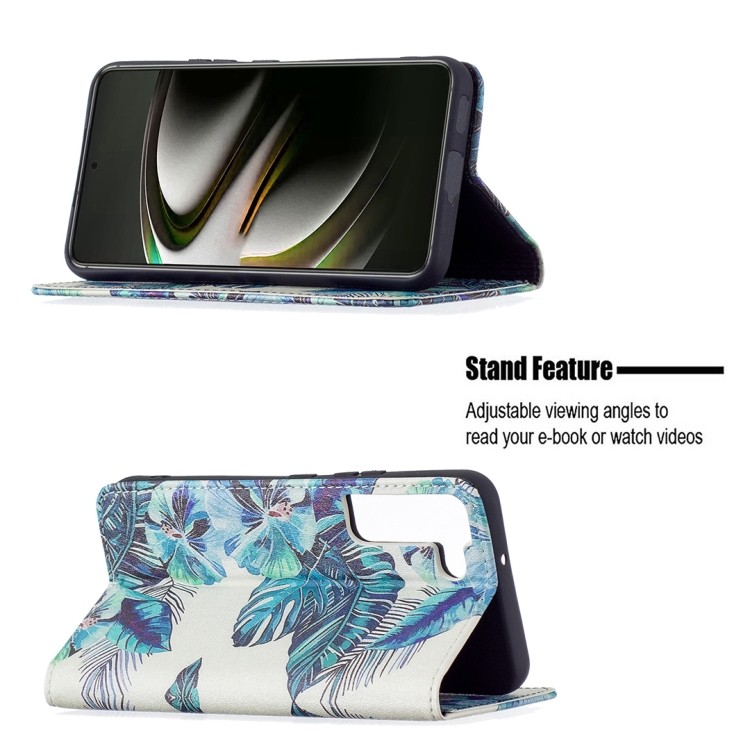 Характеристики Чохол-книжка Colored Drawing Pattern для Samsung Galaxy S22 5G - Blue Leaf