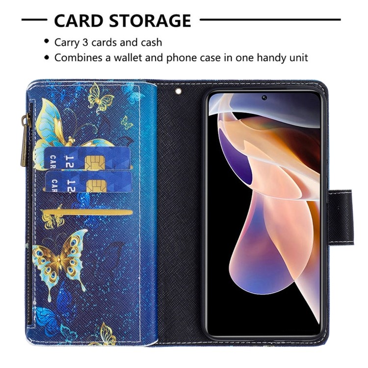 Характеристики Чохол-гаманець Colored Drawing Pattern для Xiaomi Redmi Note 11 Pro 5G (China)/11 Pro+ - Gold Butterfly