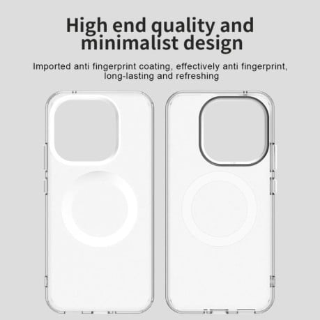 Гібридна структура об'єднує міцний полікарбонат для жорсткого каркасу та еластичний термополіуретан для амортизації ударів. Зовнішній шар з PC створює надійну основу, стійку до подряпин і деформації, тоді як внутрішній TPU-шар поглинає енергію падінь завдяки спеціальним повітряним подушкам у кутах. Імпортне покриття ефективно відштовхує жирові відбитки та забруднення — корпус залишається чистим навіть при інтенсивному використанні. Оксамитова матова текстура задньої панелі забезпечує делікатний тактильний комфорт, не викликаючи втоми рук при тривалій роботі. Прозорість матеріалу зберігає початкову естетику пристрою, додаючи лише тонку білу акцентну рамку MagSafe.