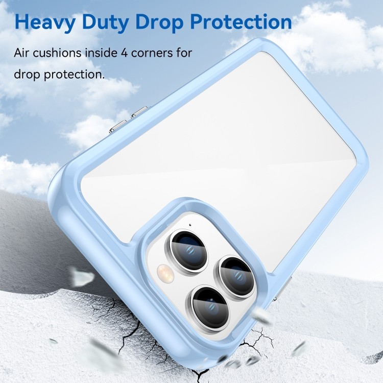 Захистіть та прикрасьте свій iPhone 14 Pro Max за допомогою протиударного чохла Colorful Acrylic Series! Цей чохол, що відрізняється своїм синім кольором і акриловими накладками, ідеально підходить для чоловіків і жінок. Маючи комбінацію TPU та акрилового матеріалу, він забезпечує високий ступінь захисту від ударів та падінь.