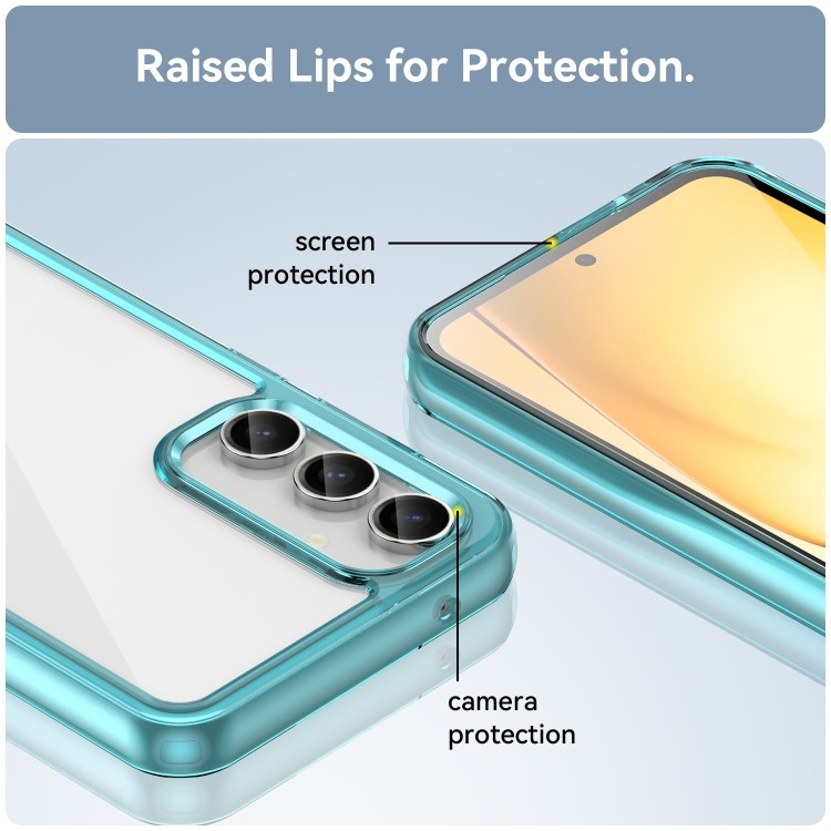 Ця захисна накладка для Samsung Galaxy S23 FE не тільки зміцнить впевненість у безпеці вашого гаджета, але й додасть йому витонченості. Поєднання акрилу та TPU матеріалів забезпечує надійний захист від ударів та подряпин. Прозора задня панель демонструє оригінальний колір смартфона, підкреслюючи його дизайн. Сині бічні грані надають аксесуару свіжого вигляду, зберігаючи легкий доступ до всіх кнопок і портів пристрою.