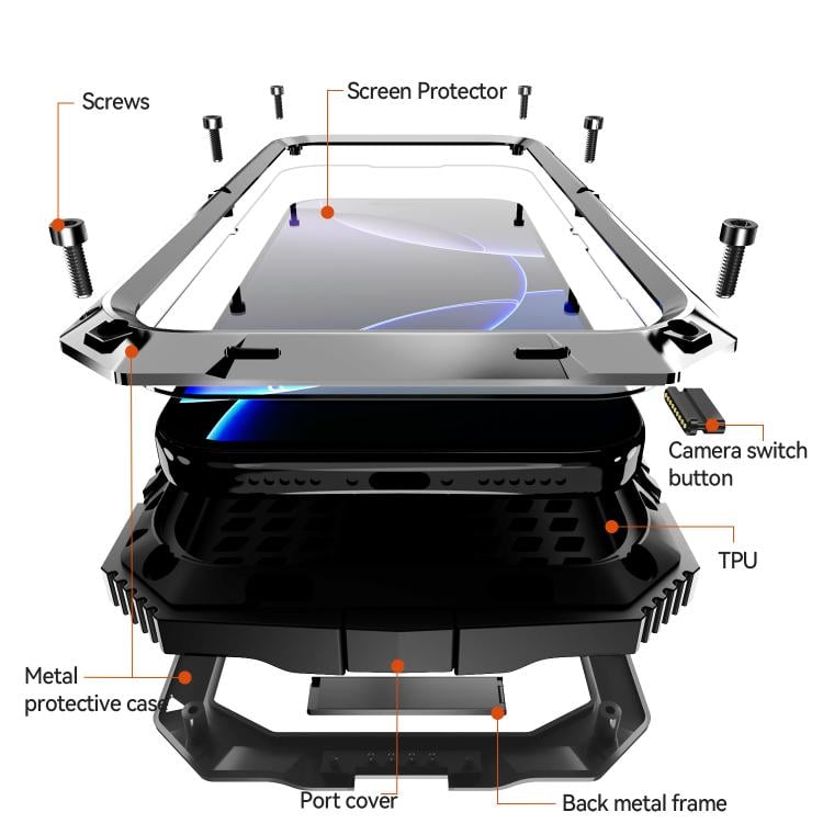 Опис Протиударний чохол R-JUST Metal + Silicone + Tempered Glass Life Waterproof на iPhone 17 Pro - сріблястий