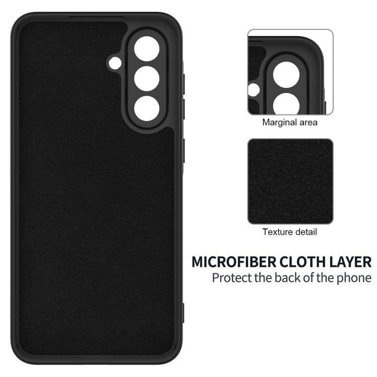 Акуратна накладка Solid Color Liquid Silicone створена для Samsung Galaxy A17 4G. Зовнішній шар із Liquid Silicone дає м’який soft‑touch, стійкість до відбитків і впевнений хват. Всередині — делікатна мікрофібра, яка виключає протирання кришки. Борти підняті на 0,9 мм для дисплея і блоку камер; кути глушать удари. Чорний мінімалізм поєднується з діловим і повсякденним стилем. Іконки на фото підтверджують: scratch‑resistant, anti‑fingerprint, comfortable grip. Для активних користувачів, втомлених від сколів і бруду, аксесуар економить час на догляд і подовжує життя смартфона; передбачено вушко під ремінець.