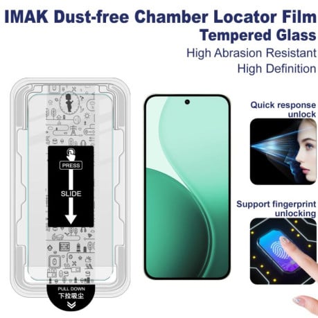Захист imak H Series створений спеціально для власників OPPO Reno14 Global, які втомилися від складної установки і пилу під плівкою. Унікальна пиловидаляюча камера Dust-free Chamber вирішує головну проблему — потрапляння частинок при наклеюванні. Загартоване скло 9H витримує щоденні подряпини від ключів і монет, зберігаючи первозний вигляд дисплея місяцями. Висока стійкість до стирання гарантує, що екран залишиться кришталево чистим навіть при активному використанні. Технологія Quick Response Unlock забезпечує миттєве розпізнавання відбитка пальця без затримок.