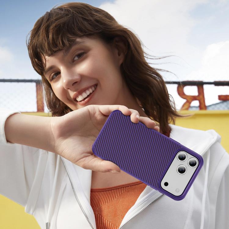Особенности Ударозащитный чехол Carbon Fiber Texture Skin-feel Acrylic на iPhone 17 Pro - фиолетовый